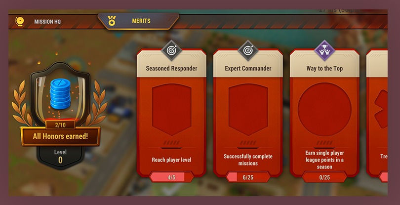To view them, tap on the Merits’ tab next to the Mission HQ’ tab.